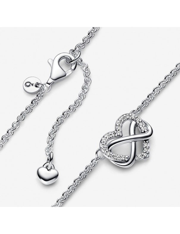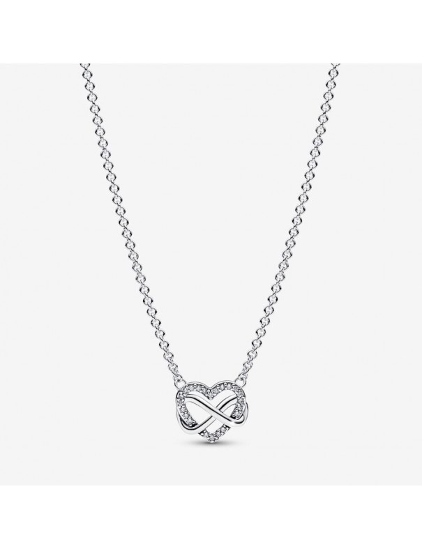 Collar de plata Pandora Corazón Infinito Brillante 392666C01-50 para mujer. Es de plata de primera ley de 925 mls y con circonitas. Mide 50 cm de largo. Garantía de tres años.