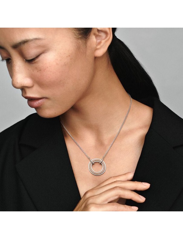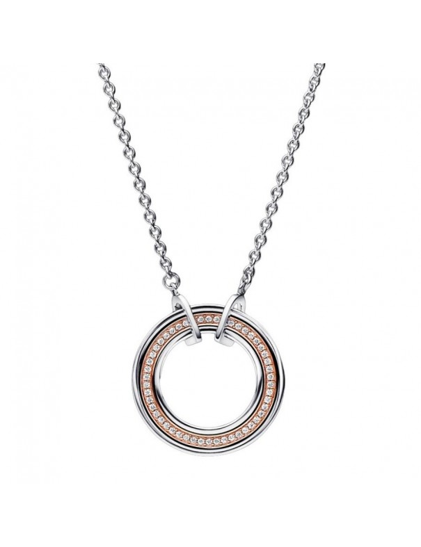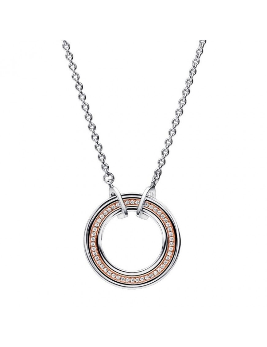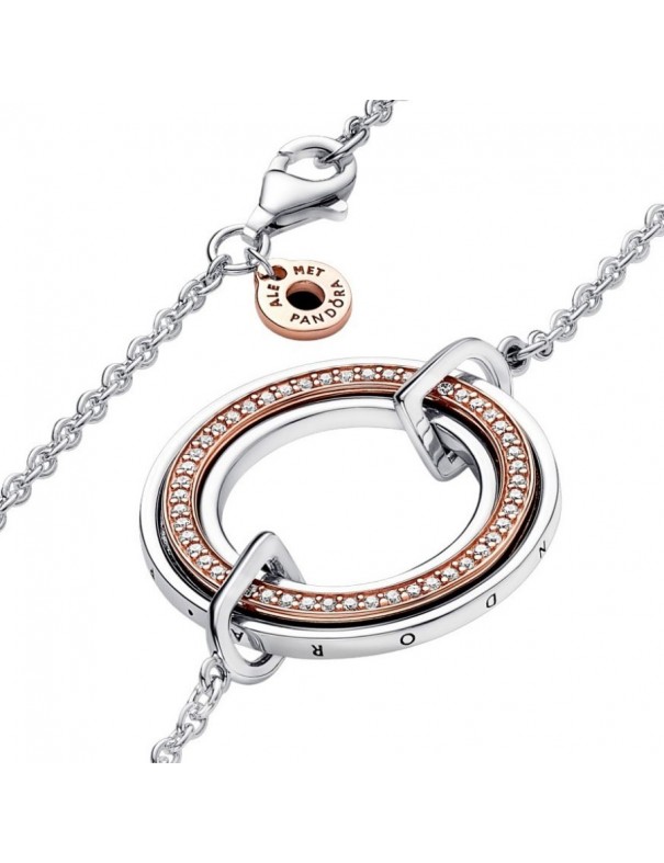 Collar Pandora Signature Logo y Pavé en Dos Tonos 382772C01-50 para mujer. Está fabricado en plata de primera ley de 925 mls, una aleación especial de metales bañado en oro rosa de 14 kts y circonitas. Garantía de tres años.