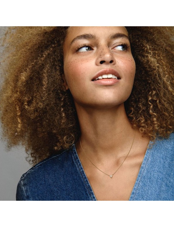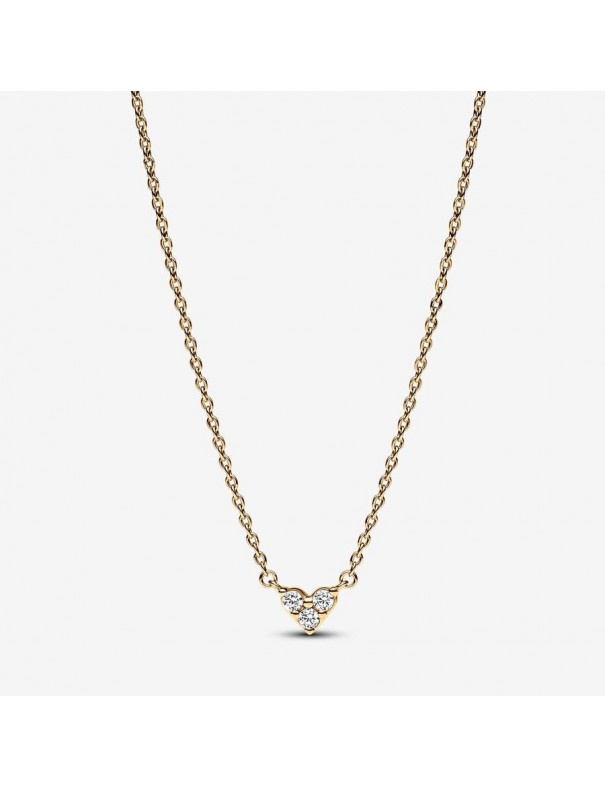 Collar Pandora Corazón Tres Gemas 363014C01-45. Es de una aleación especial de metales bañada en oro de 14 kts con circonitas. Mide 45 cm de largo. Garantía de tres años.