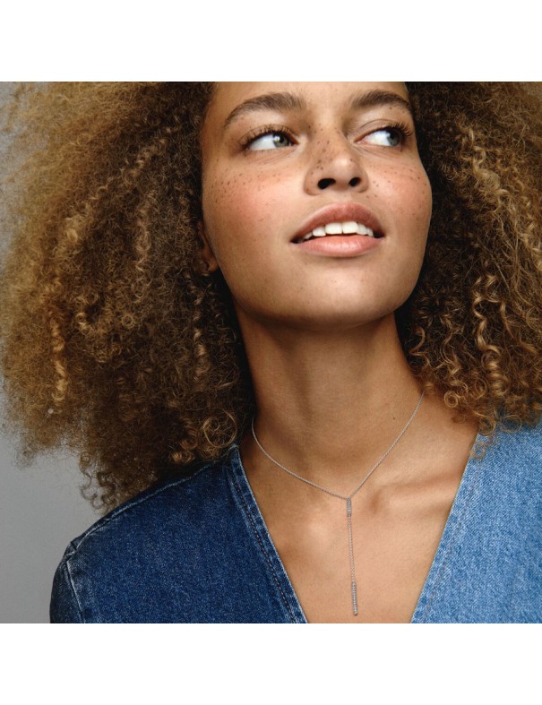Collar Prisma de Pavé Pandora Timeless 393013C01-45. Es de plata de primera ley de 925 mls con circonitas. Mide 45 cm de largo. Garantía de tres años.