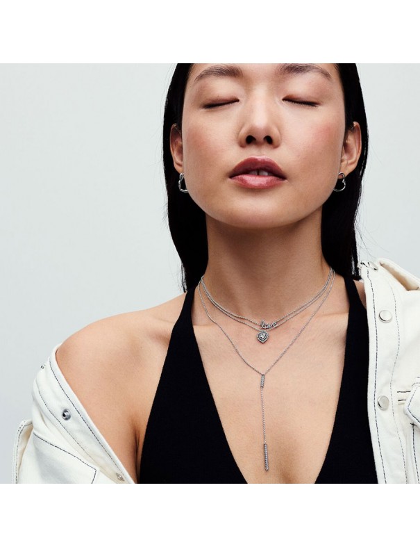 Collar Pandora Corazón Halo Brillante 393099C01-45. Es de plata de primera ley de con circonitas y la cadena mide 45 cm. Tiene tres años de garantía.
