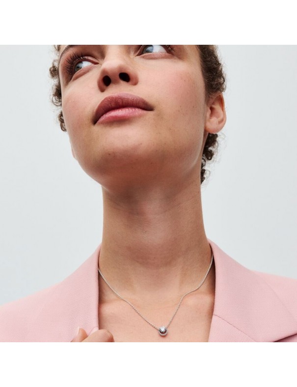 Collar Pandora Halo Redondo Brillante 391174C01-45. Es de plata de primera ley de 925 mls con circonitas. Mide 45 cm de largo. Garantía de tres años.