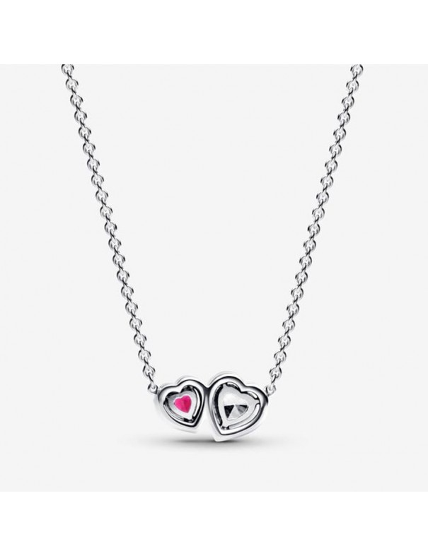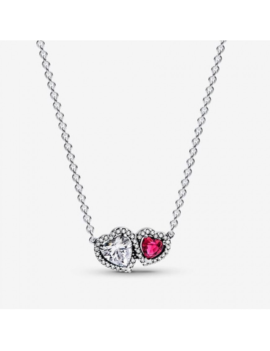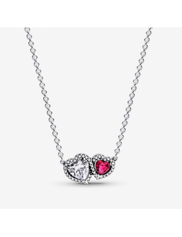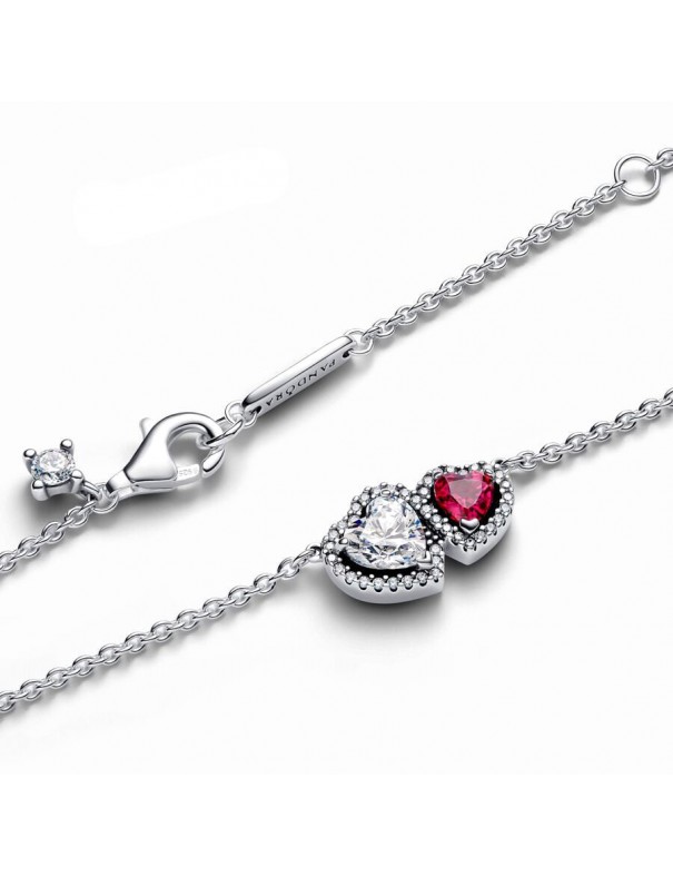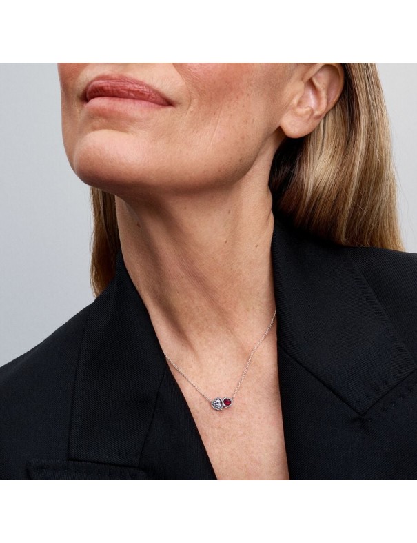 Collar Halo Corazones 393632C01-45. Collar ajustable fabricado en plata de primera ley adornado con un cristal artificial en color rojo y una circonita transparente, ambas en forma de corazón unidas por gemas adornadas en pavé. Garantía de 3 años.