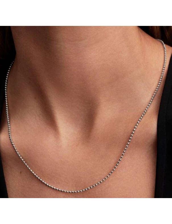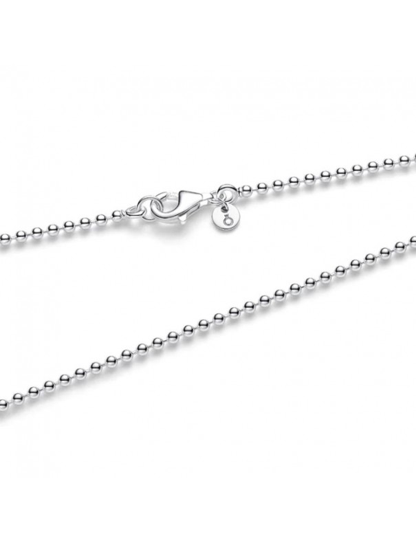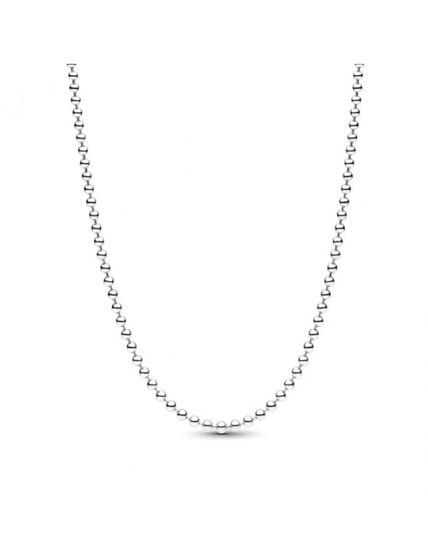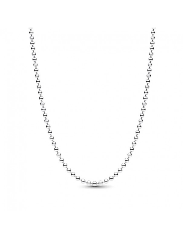 Collar Pandora Cadena Cuentas 394452C00-50. Collar tipo cadena de cuentas/balines de plata de ley en color plateado con diseño minimalista y moderno, sin piedras, ideal para llevarlo solo o combinado con charms o colgantes Pandora. Su forma es de cadena larga de 50 cm con textura de pequeñas esferas que aporta brillo sutil y elegancia.