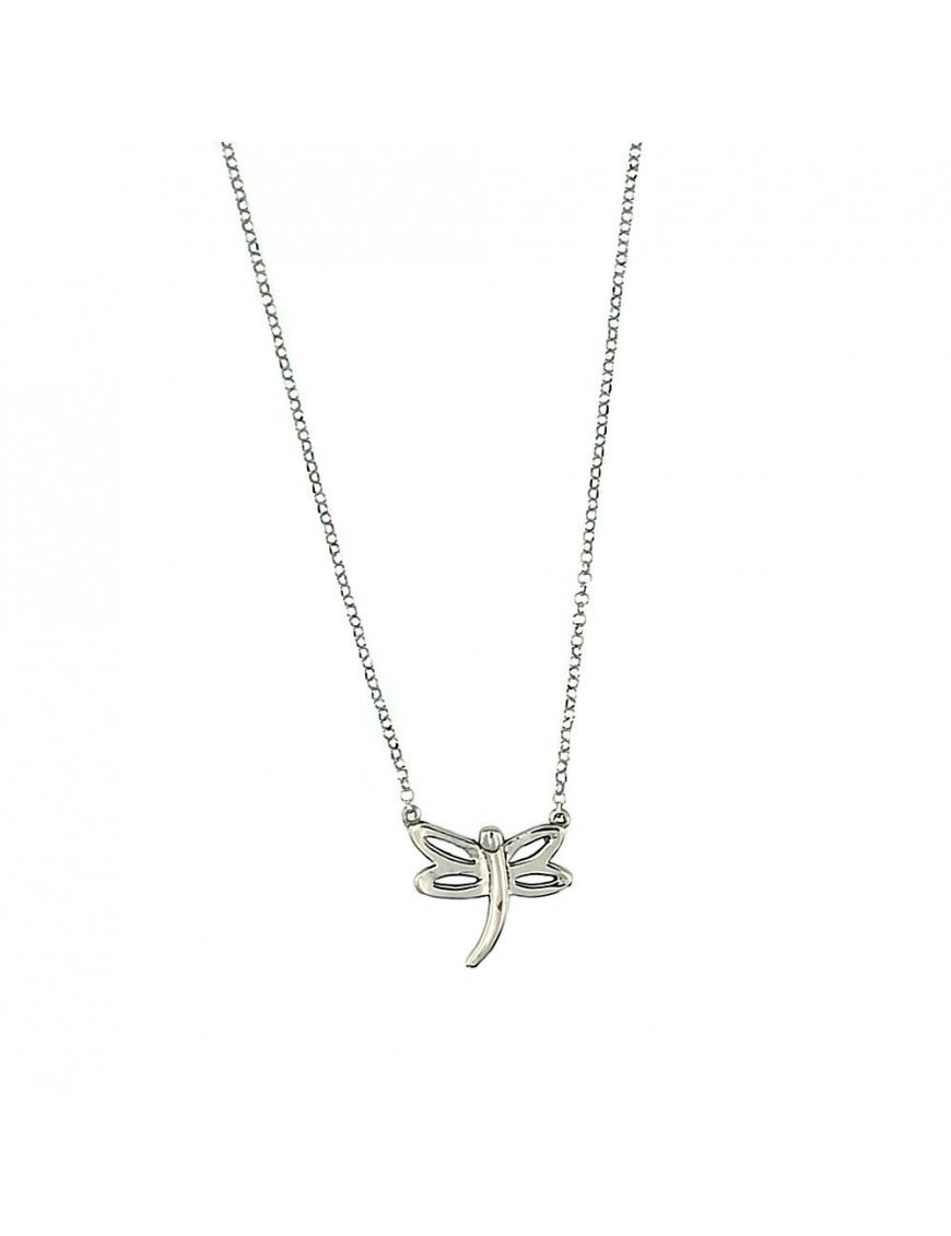 Collar Plata libélula niña 026013-1-1. Es un collar para niña que está elaborado en plata de ley, 925mls, y está decorado por una pequeña libélula de 15 milímetros.