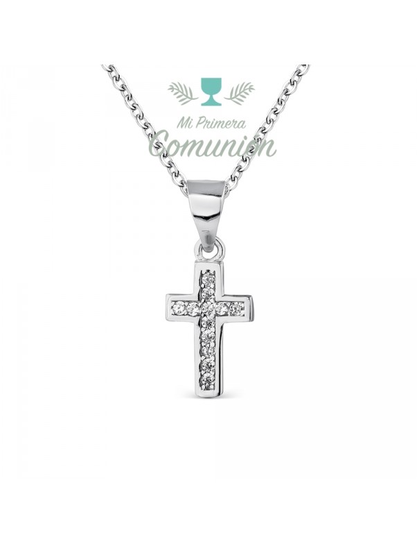 Colgante De Plata Cruz Con Circonitas 9111614, en plata de primera ley 925mls. Cadena de 45cm cierre de mosquetón. Dimensiones de la cruz 12X8mm.
