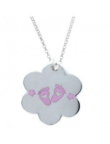 Collar plata Mujer Pies 9093503&CHAIN. Se trata de un collar hecho en plata de ley, 925mls, para mujer. Tiene un colgante en forma de nube que está decorado por unos pies y estrellas esmaltadas en color rosa. Sus dimensiones son de 3,1x3,0cm.