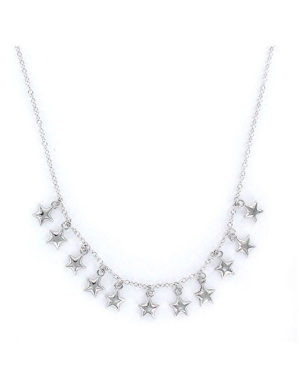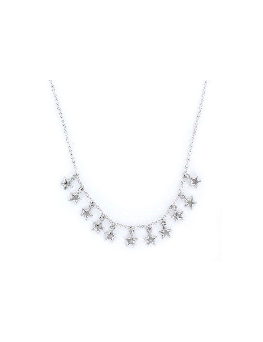 Collar Plata mujer con estrellas colgando 9101529. Es un collar fabricado en plata de ley, 925mls, para mujer. La cadena forzada tiene 11 estrellas colgando y una medida de 38+5 centímetros. La garantía de las joyas de plata es de 2 años contra cualquier defecto de fabricación. Todos nuestros pedidos se envían con envoltorio de regalo gratuito.