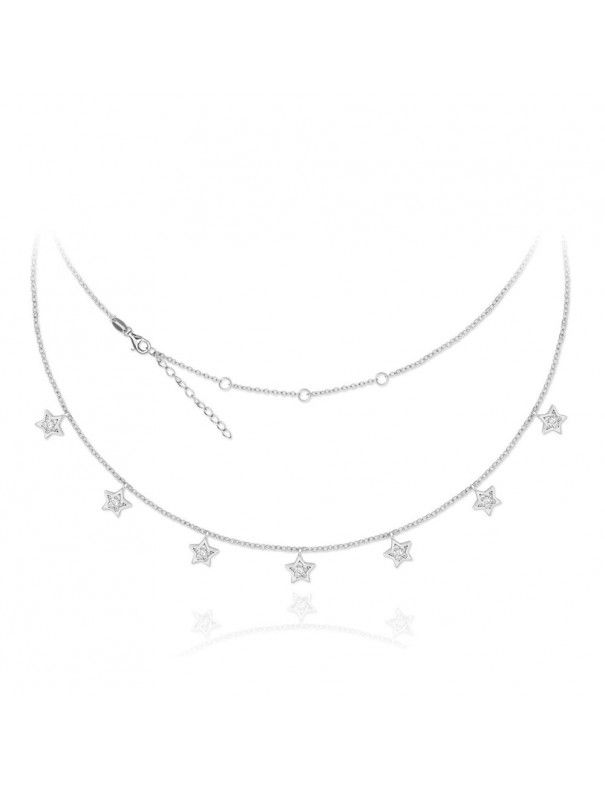 Collar de plata con estrellas 174995. Es de plata de primera ley de 925 mls con baño de rodio y circonitas. Mide 45 cm más 6 cm adicionales para ajuste.
