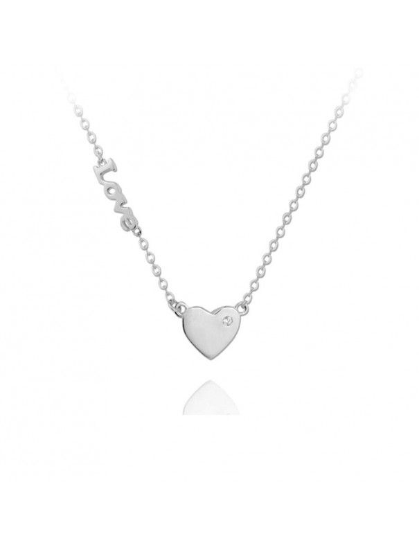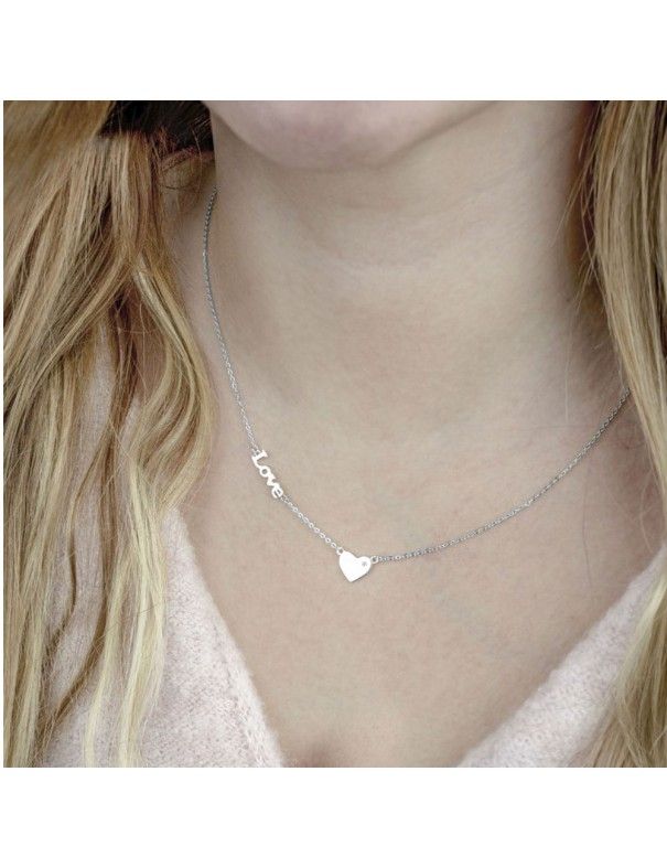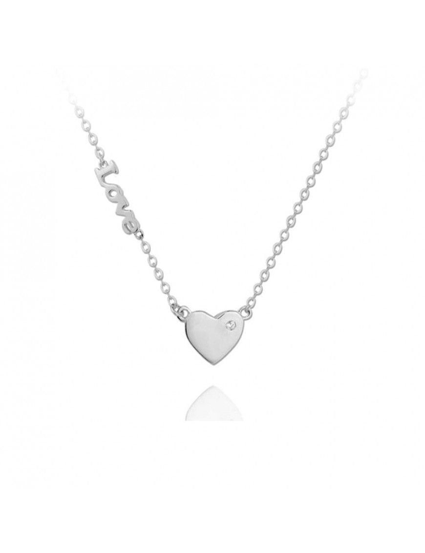 Collar De Plata Corazón Love 175330, fabricado enplata de primera ley 925mls y circonita. Cadena de 42cm de larga y corazón de 8X9mm.