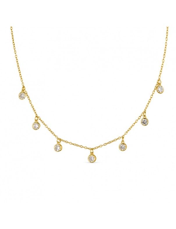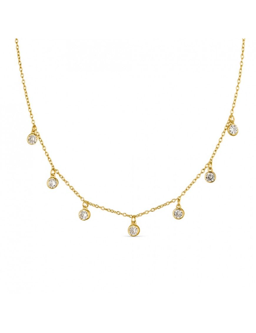 Collar De Plata Bañado En Oro Huellas 9109053, en plata de ley 925mls bañado en oro de 18kts de 5 micras. Colgantes compuestos por circonitas. Cadena de 37,5cm con cadenilla de ajuste de 5cm.