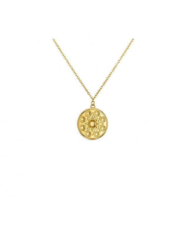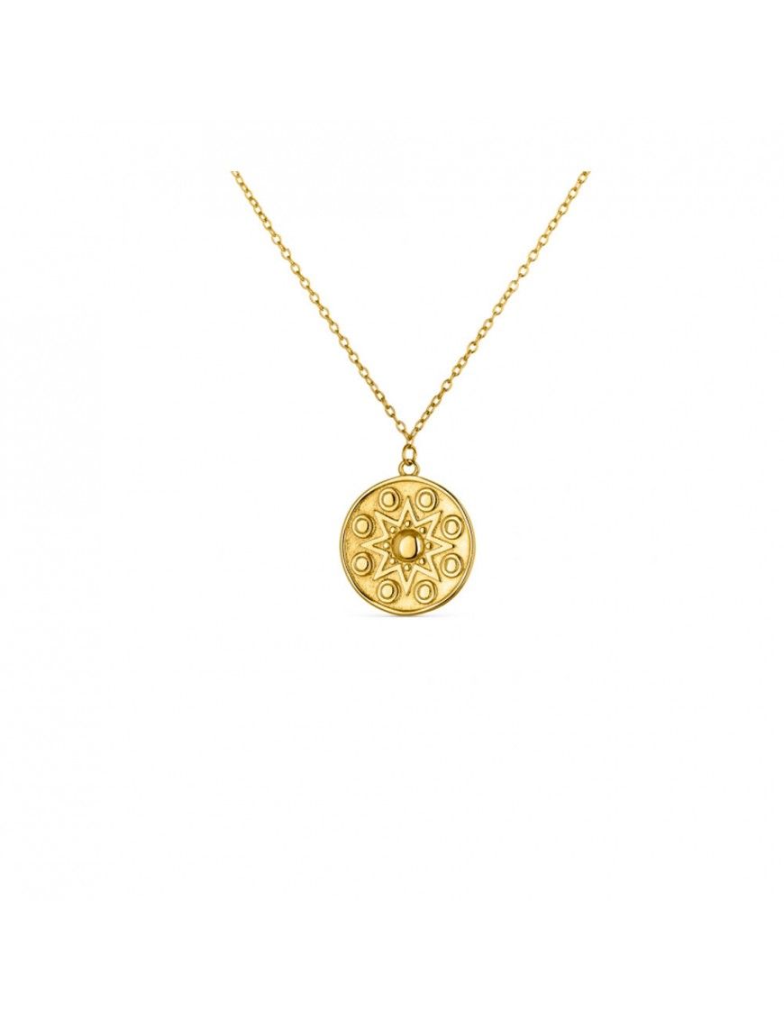 Collar De Plata Bañado En Oro Disco Estrella 9109799, en plata de ley 925mls bañado en oro de 18kts de 5 micras. Cadena de 38cm con cadenilla de ajuste de 5cm.