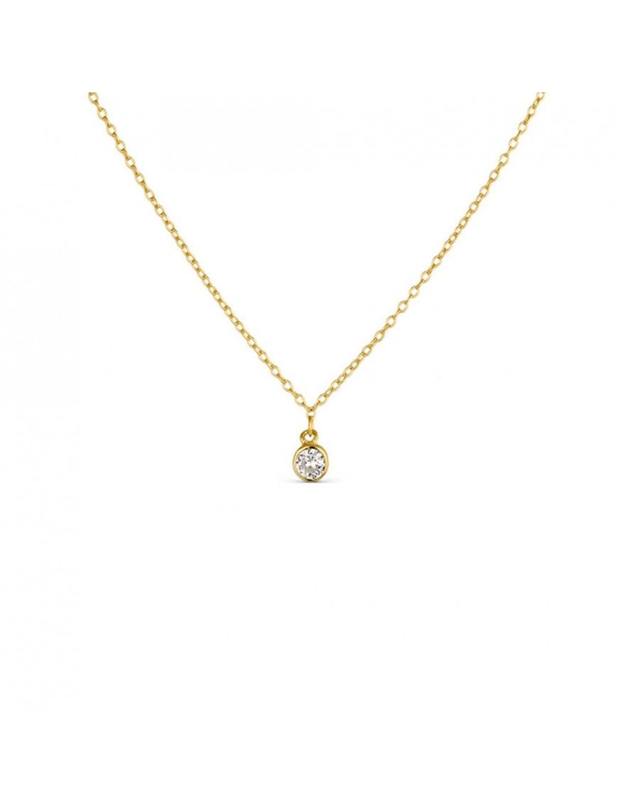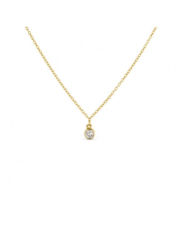 Collar De Plata Bañado En Oro Circonita 9109148, en plata de ley 925mls bañado en oro de 18kts de 5 micras. Cadena de 37,5cm con cadenilla de ajuste de 5cm. Circonita de 4mm.