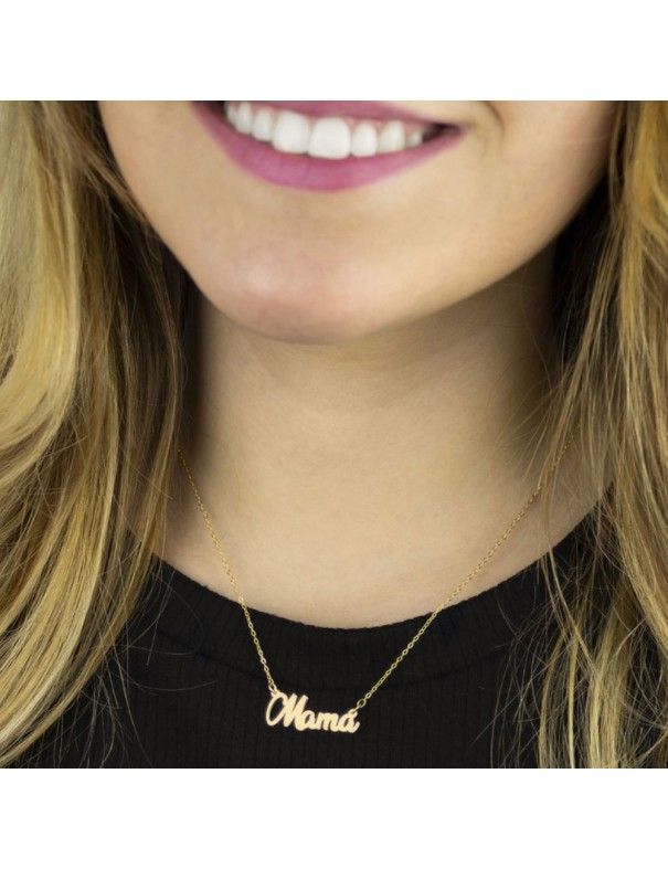 Collar De Plata Chapado Mamá 175403, en plata de primera ley 925mls y chapado en color dorado. Colgante de 10X25mm. Cadena de 40cm de largo y cadenilla de ajuste de 4cm. Cierre de mosquetón.