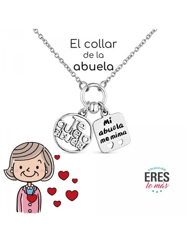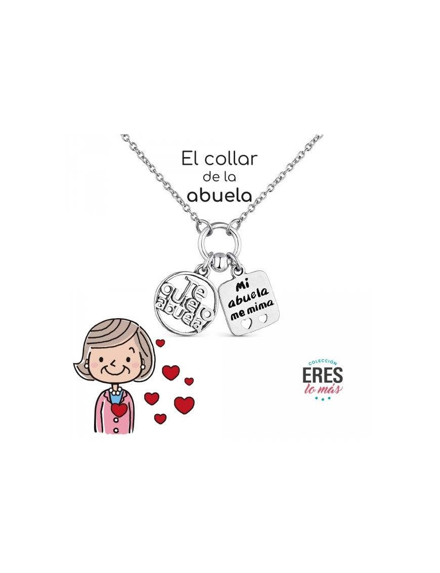 Collar De Plata Abuela 9111362, en plata de primera ley 925mls y baño de rodio. Decorado con colgantes "Te quiero abuela" y "Mi abuela me mima". Cadena de 37cm y cadenilla de ajuste de 5cm. Cierre de mosquetón.
