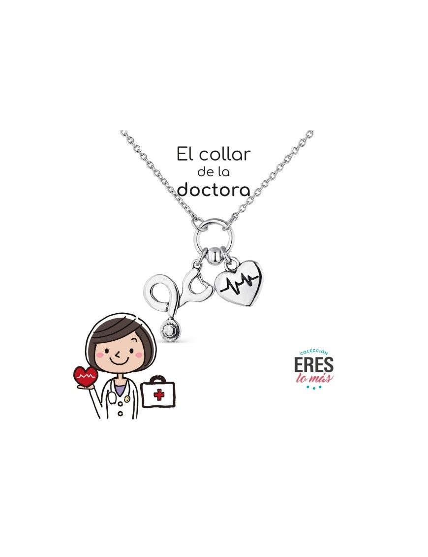 Collar De Plata Doctora 9111364, en plata de primera ley 925mls y baño de rodio. Decorado con colgantes "Fonendoscopio" y "Corazón con latidos". Cadena de 37cm y cadenilla de ajuste de 5cm. Cierre de mosquetón.