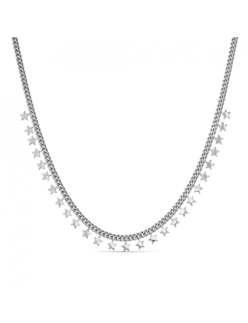 Collar De Plata Barbada Estrellas 9110319, en plata de primera ley 925mls y baño de rodio. Cierre de mosquetón.