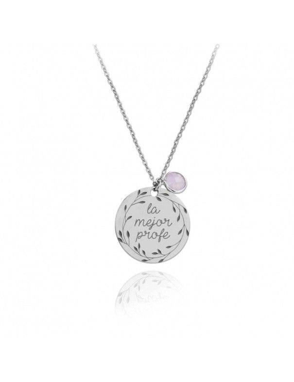 Collar de Plata La Mejor Profe 175445, en plata de primera ley 925mls y baño de rodio. Cadena de 40cm con cadenilla de ajuste de 5cm. Cierre de msoquetón. Colgante de 22mm de diámetro, decorado con grabación y esmalte negro, acompañado de circonita.