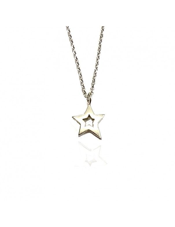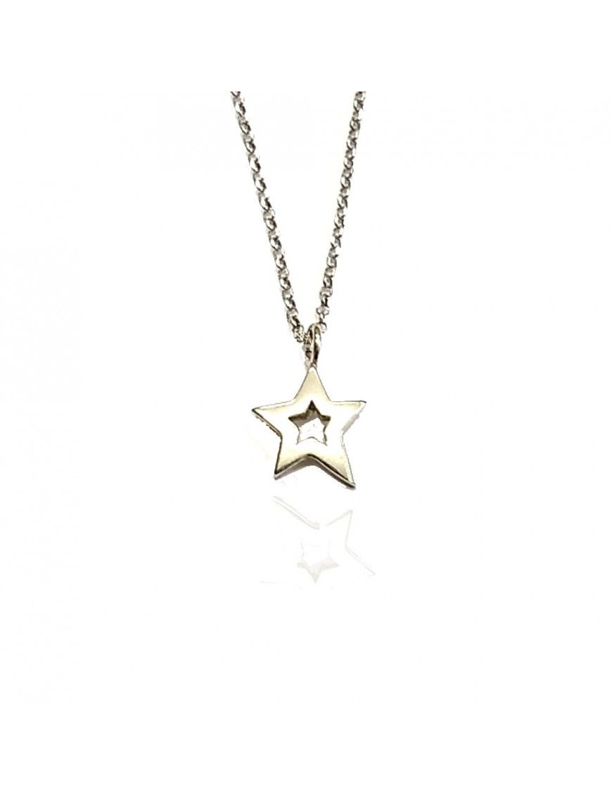 Collar De Plata Estrella 026395-1-1, en plata de primera ley 925mls y baño de rodio. cadena de 42cm con cadenilla de ajuste de 3cm. Cierre de mosquetón. Estrella de 12mm de diámetro.