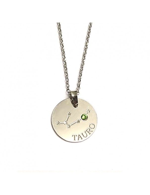 Collar De Plata Horóscopo Tauro 027575-1-1-7, en plata de primera ley 925mls y circonita de color. Chapa de 14mm de diámetro, decorada con grabación de constelación y signo. Cadena de 40cm de largo con cadenilla de ajuste de 3cm. Cierre de mosquetón.