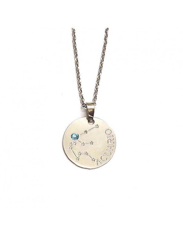 Collar De Plata Horóscopo Acuario 027575-1-1-39, en plata de primera ley 925mls y circonita de color. Chapa de 14mm de diámetro, decorada con grabación de constelación y signo. Cadena de 40cm de largo con cadenilla de ajuste de 3cm. Cierre de mosquetón.