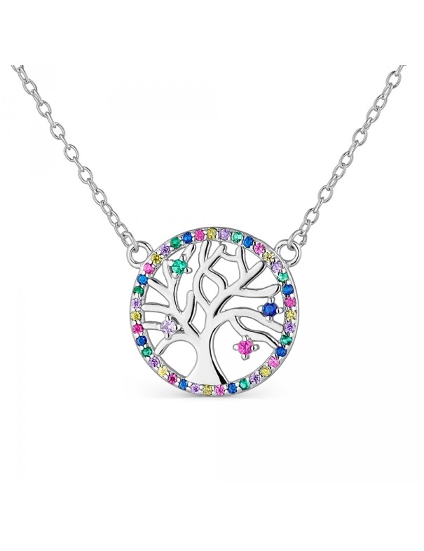 Collar De Plata Árbol De La Vida Circonitas Multicolor 9111018, en plata de primera ley 925mls. Decorado con circonitas nmulticolor. Colgante de 17mm de diámetro. Cierre de mosquetón. Cadena de 45cm ajustable decorada con circonita.