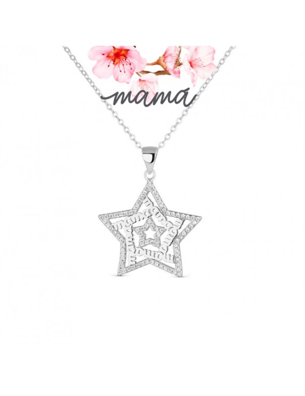 Collar De Plata Estrella Mamá 9106817, en plata de primera ley 925mls. Decorado con circonitas blancas. Cadena de 45cm, ajustable. Cierre de mosquetón.