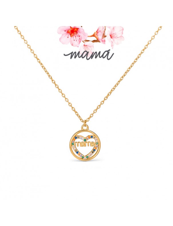 Collar De Plata Chapada Mamá Círculo Multicolor 9113716, en plata de primera ley 925mls, de 3 micras. Decorado con circonitas multicolor. Motivo de 15mm de diámetro. Cadena de 45cm, ajustable. Cierre de mosquetón.