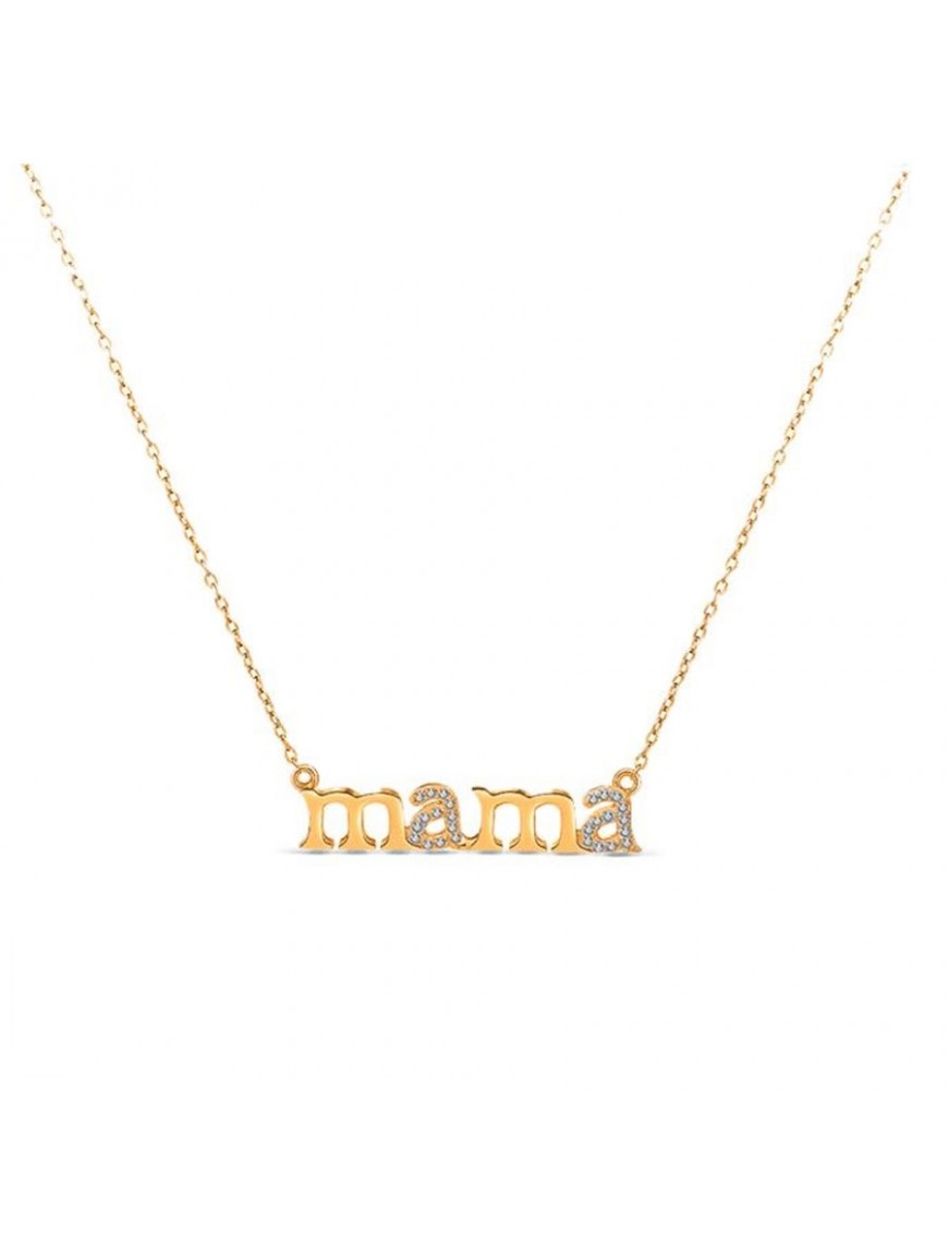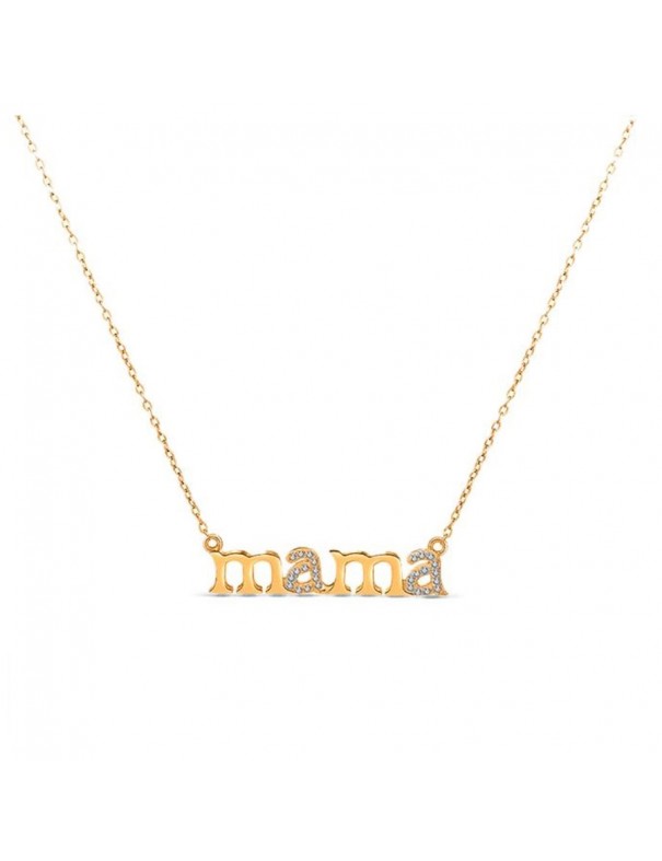 Collar de plata dorada mamá 9113720 para mujer. Es de plata dorada de primera ley de 925 mls con circonitas. Detalle mamá de 32x7 mm.