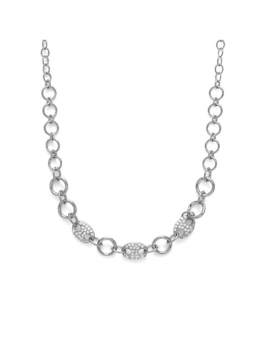 Collar Luxenter Raus Plata NXA6630000. Creado en plata de ley 925 con acabado rodiado para un diseño elegante. El color principal plateado con toques brillantes gracias a las circonitas decorativas. La forma de la cadena cuenta con un diseño de eslabones redondos. Lleva cierre cómodo de mosquetón.