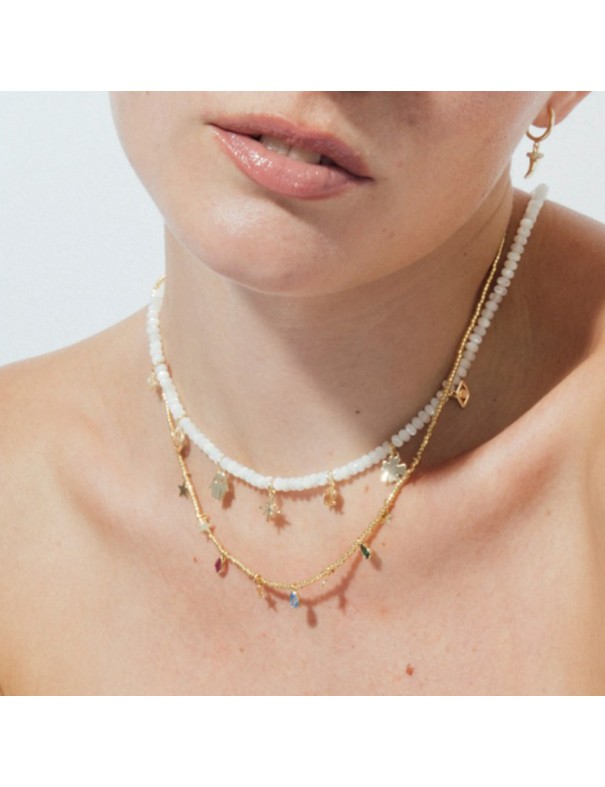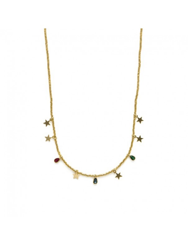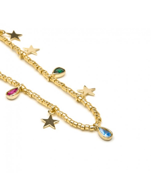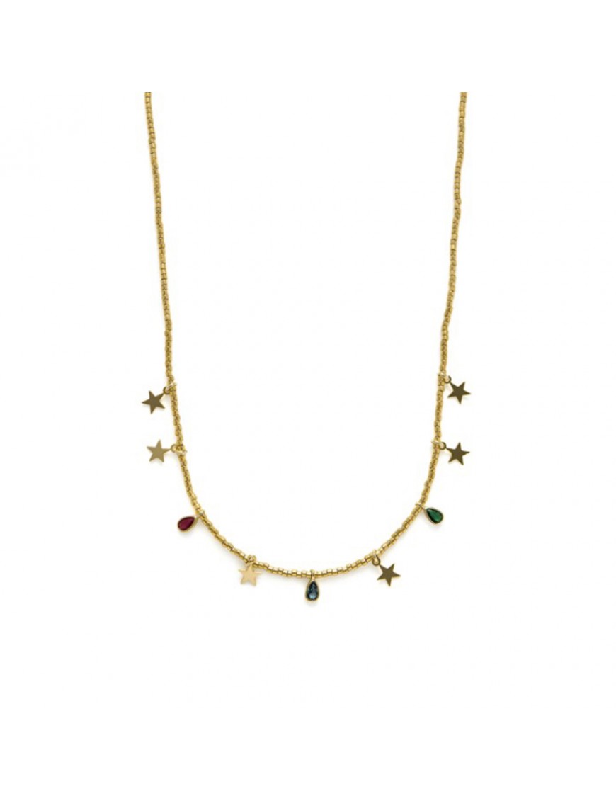 Collar Luxenter Itza Plata NXA635Y2000. Creado en plata de ley 925 con acabado en oro amarillo de 18 k. Está adornado con circonitas multicolor y estrellas. Diseñado con un cierre de mosquetón y un peso ligero para uso diario elegante.
