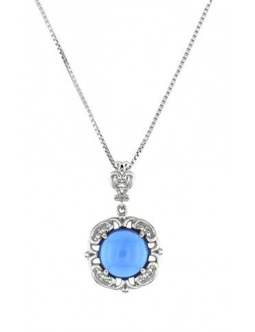 Collar plata mujer PS6070BLQ&VE 0,15-42. Collar en plata decorado con piedra azul. Cadena de 42 cm y colgante de 1,6 cm. Garantía de 2 años.