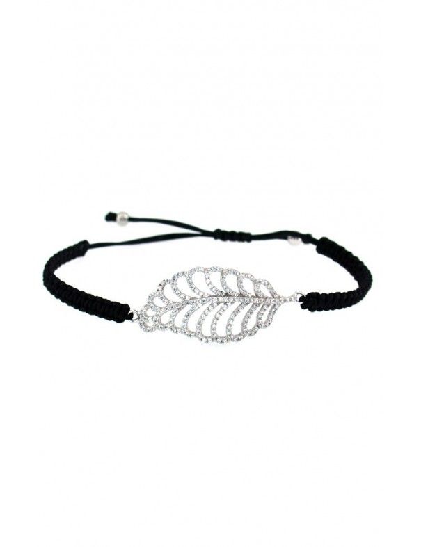 Pulsera MRJY plata mujer 9086421. Pulsera de plata de ley de 925 mls, con forma de hoja, con unas medidas 3,8 cm de largo y 1,8 cm de ancho, y está decorada con circonitas. El cordón de la pulsera es de nylon trenzado, y esta pulsera tiene una garantía de 2 años.