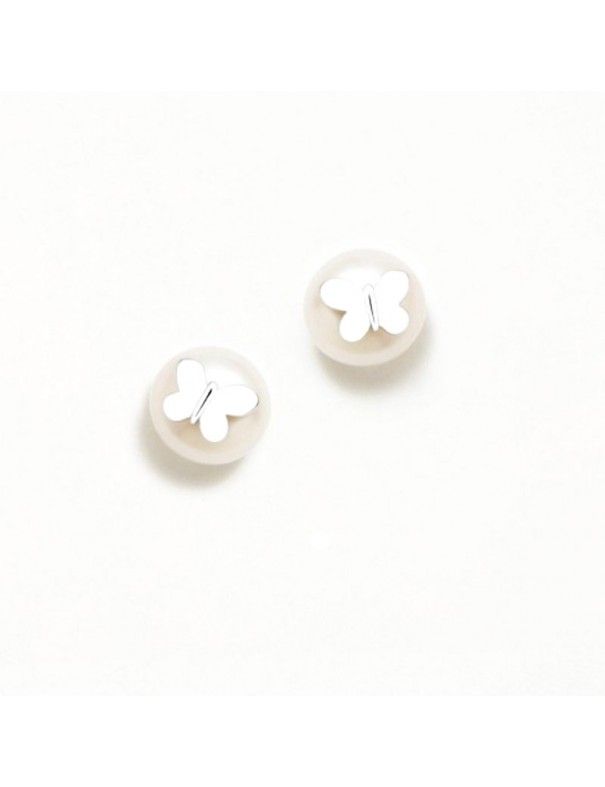 Pendientes Agatha Ruiz Plata Leonor 016LEO. Son unos pendientes de la firma Agatah Ruiz de la Prada. En plata de ley 925mls rodiados. Perla cultivada y silueta de mariposa en plata. Cierre de presión. Garantía de dos años contra defectos de fabricación.