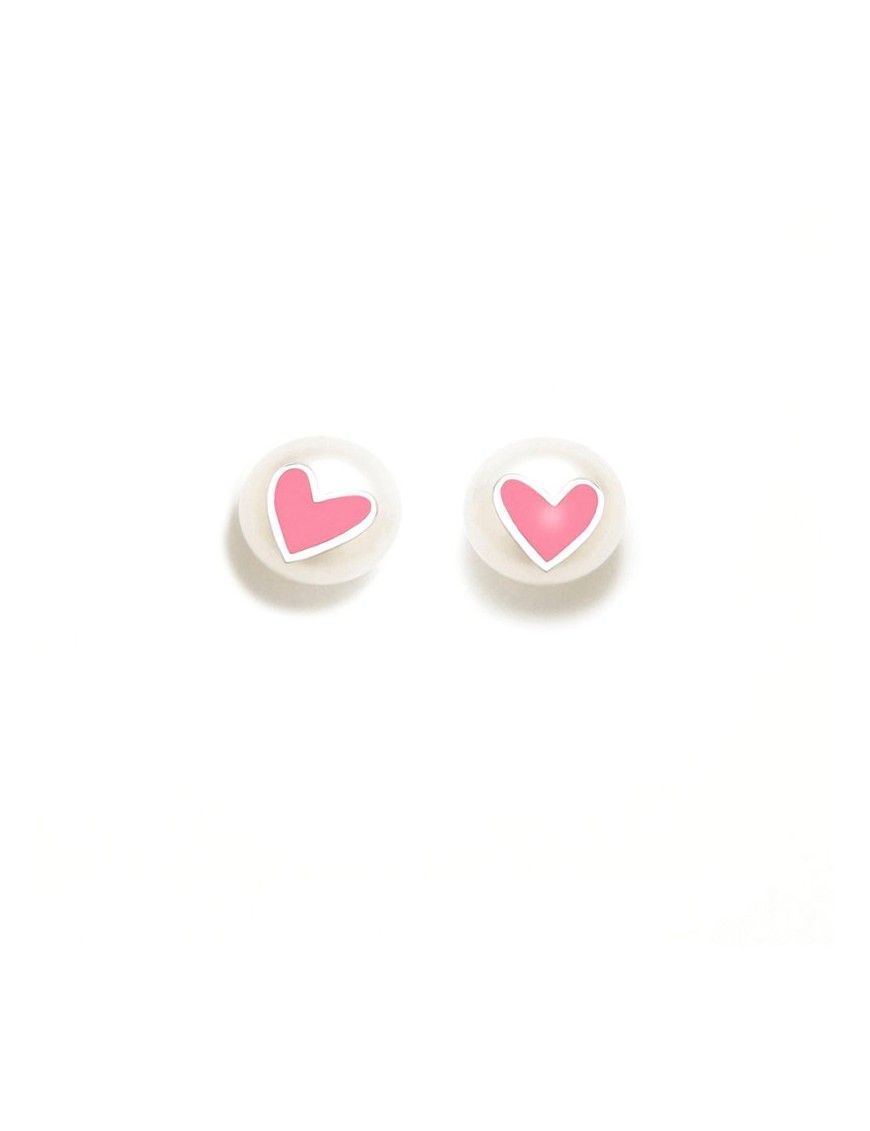 Pendientes Agatha Ruiz Plata Leonor 017LEO. Son unospendientes de la firma Agatah Ruiz de la Prada. En plata de ley 925mls. Son perlas cultivadas con silueta de corazón en plata en esmalte rosa. Cierre de presión. Garantía de dos años contra defectos de fabricación.