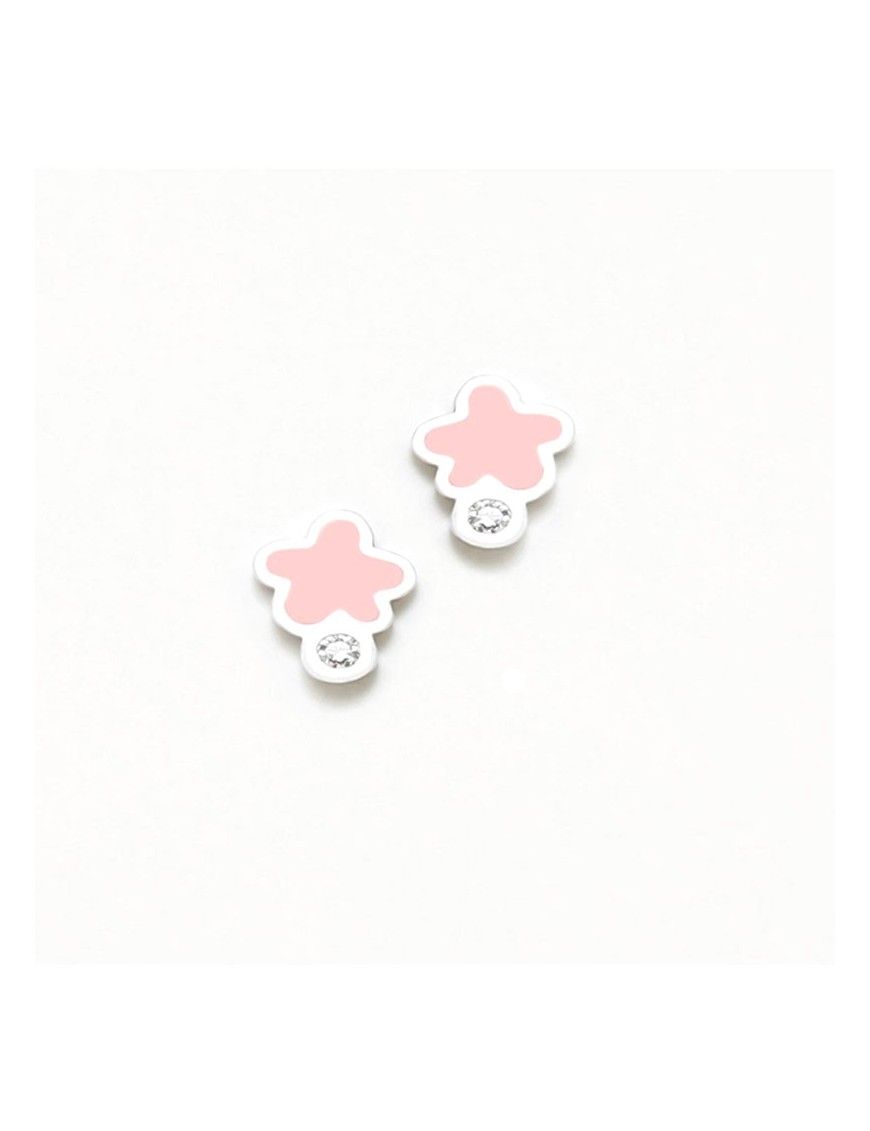 Pendientes Bebé Agatha Ruiz Plata Nube 045NBE. Son unos pendientes de la firma Agatha Ruiz de la Prada. En plata de ley 925mls rodiados. Circonita y silueta de flor en esmalte rosa. Cierre de rosca. Garantía de dos años contra defectos de fabricación.