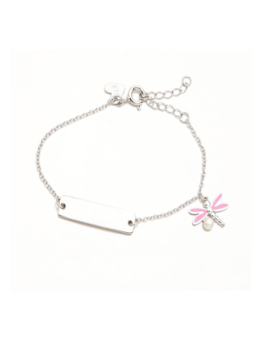 Pulsera Agatha Ruiz Plata Leonor 306LEO, en plata de ley 925mls rodiada. Con placa y colgante de libélula en esmalte rosa. Longitud de 114cm y cadenilla de ajuste de 3cm. Garantía de dos años contra defectos de fabricación.