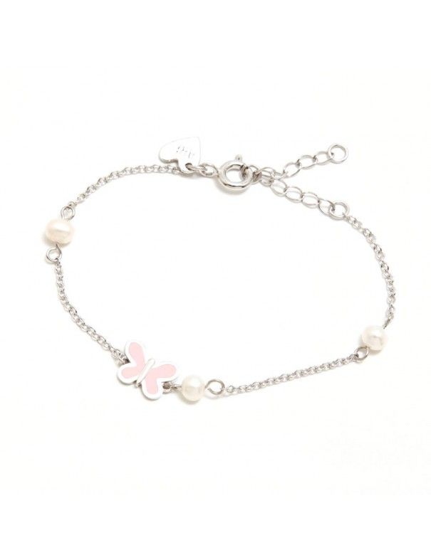 Pulsera Agatha Ruiz Plata Leonor 309LEO, en plata de ley 925mls rodiada. Perlas cultivadas y mariposa de plata con esmalte rosa.