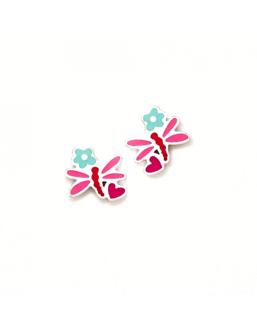 Pendientes Agatha Ruiz Plata 025SWE, en plata de primera ley 925mls y decorados con esmalte rojo, rosa, fucsia y verde turquesa. Cierre de presión. Tamaño de 7X7mm.