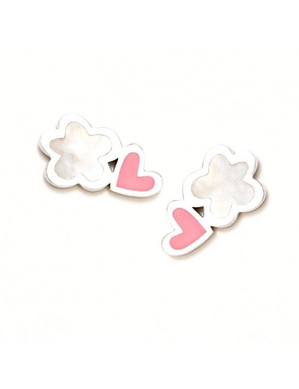 Pendientes Agatha Ruiz Plata 030MAD, en plata de primera ley 925mls y nácar, decorados con esmalte rosa. Cierre de presión. Tamaño de 13X7mm.