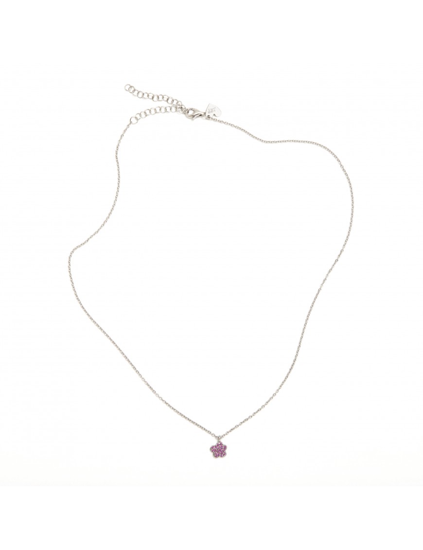 Collar Agatha Ruiz Plata 120STA, en plata de primera ley 925mls, decorado con circonitas fucsias. Cadena de 45cm ajustable. Cierre de mosquetón.
