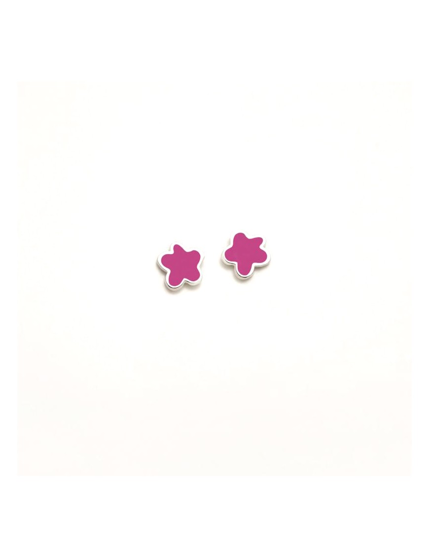 Pendientes Agatha Ruiz Plata 060SUP, en plata de primera ley 925mls, decorados con esmalte fucsia, Cierre de presión.