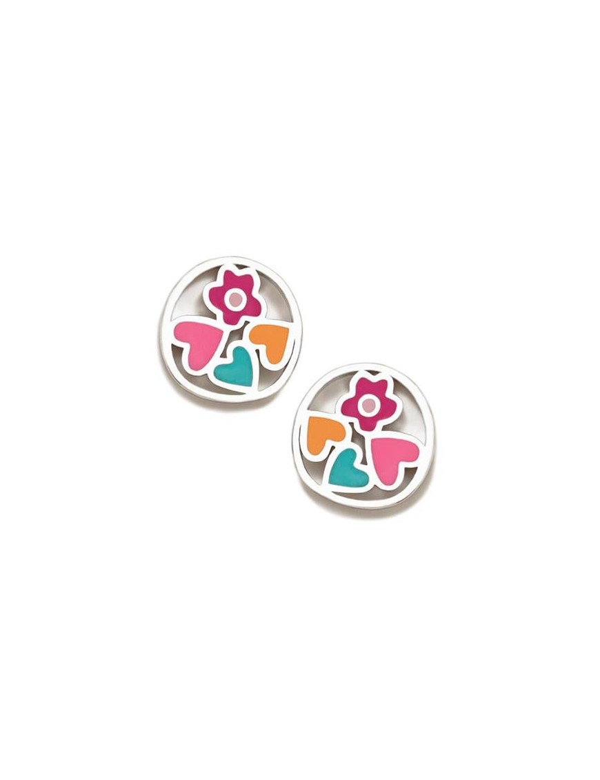 Pendientes de plata Agatha Ruiz de la Prada Rigoberta Tondo 005RIG para niñas. Son de plata de primera ley de 925 mls. con esmalte. Llevan cierre de presión. Tienen garantía de tres años contra defectos de fabricación.