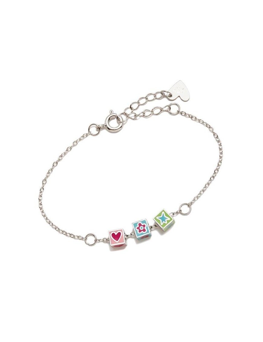 Pulsera de plata Agatha Ruiz de la Prada Cubos 310CUB para niñas. Es de plata de primera ley de 925 mls con esmalte.