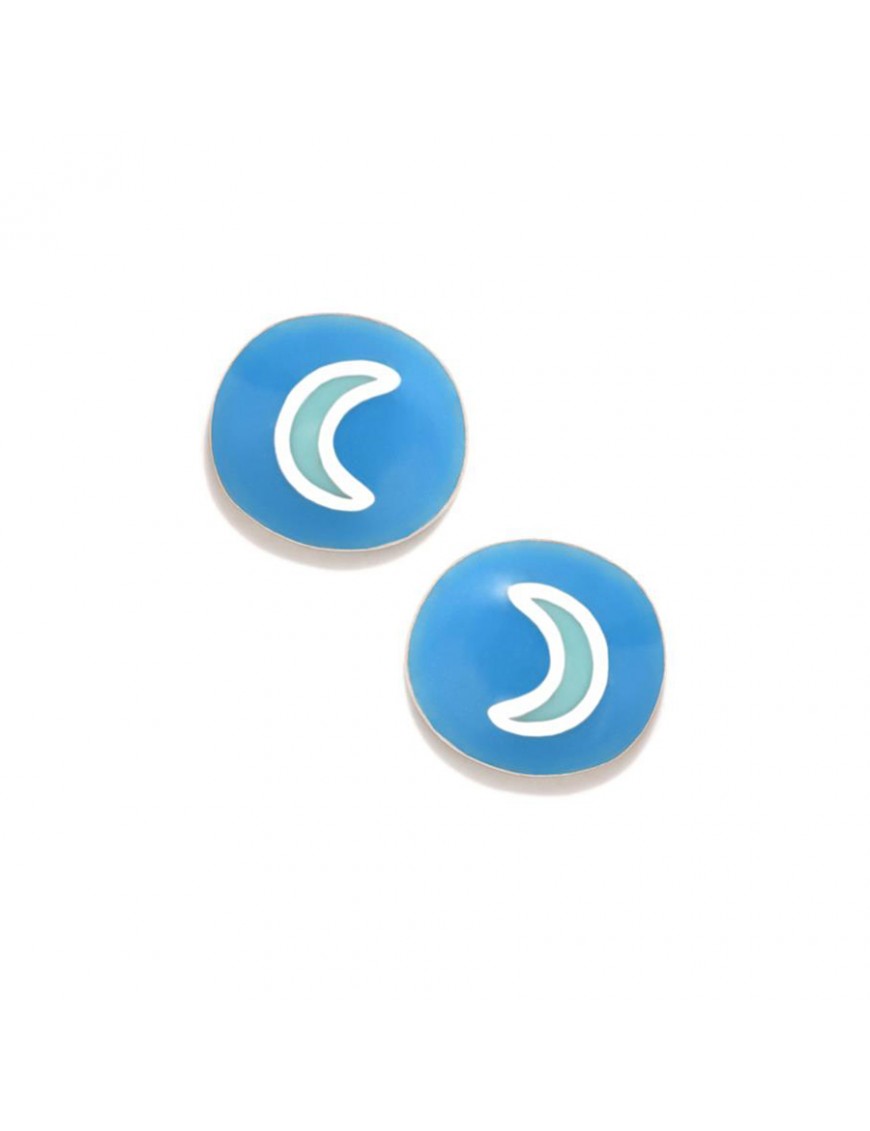 Pendientes Luna Agatha Ruiz de la Prada para niña 025FUN. Son de plata de primera ley de 925 mls. Decorados con esmalte azul. Llevan cierre de presión y mide 7 mm de alto. Tres años de garantía contra defecto de fabricación.