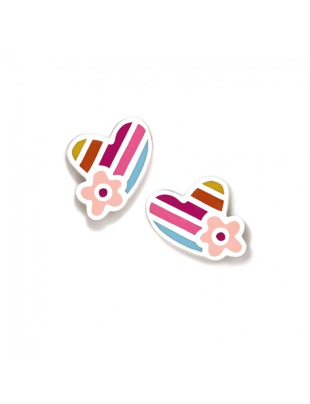 Pendientes Corazón Agatha Ruiz de la Prada para niña 025ARCO. Son de plata de primera ley de 925 mls. Decorados con esmalte multicolor. Llevan cierre de presión y mide 7.5 mm de alto. Tres años de garantía contra defecto de fabricación.