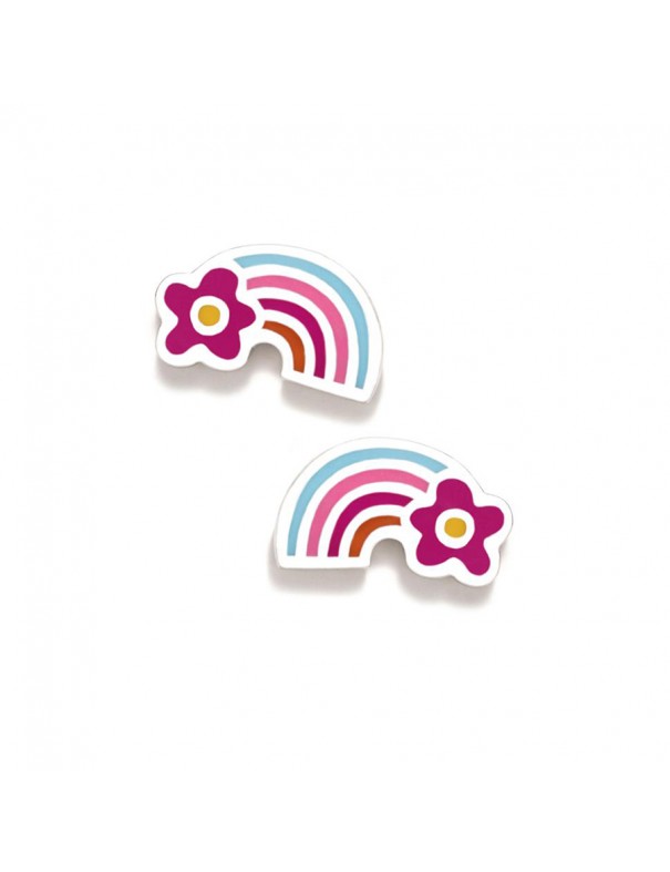 Pendientes Arcoiris Agatha Ruiz de la Prada para niña 005ARCO. Son de plata de primera ley de 925 mls. Decorados con esmalte multicolor. Llevan cierre de presión y mide 5.5 mm de alto. Tres años de garantía contra defecto de fabricación.