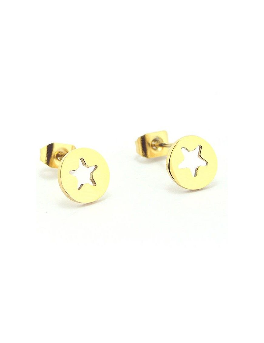 Pendientes Anartxy acero mujer APE401. Realizado en acero bañado en dorado con motivo de estrellas. Cierre de presión. Diámetro de 8mm. Garantía 2 años.