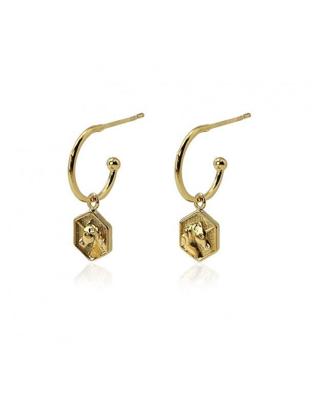 Pendientes Anartxy Acero Mujer BPE158. Son unos aros terminados en una moneda y elaborados por la marca Anartxy, para mujer. Están hechos en acero hipoalergénico e inoxidable con baño dorado, adornado con un unicornio de la suerte. Miden 12 milímetros y tiene cierre de presión