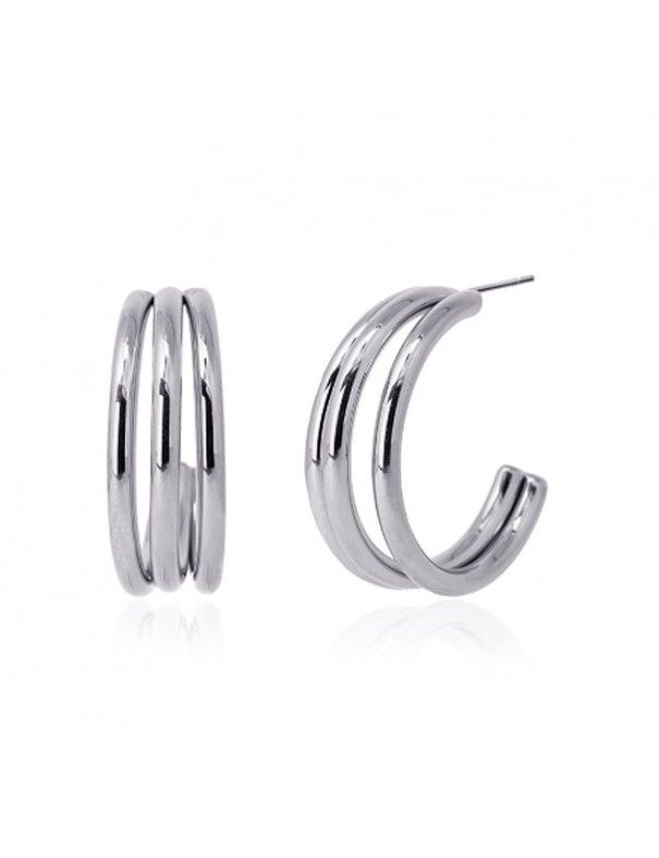 Pendientes Anartxy acero tres líneas BPE389PL. Están realizados en acero quirúrgico y miden 32 mm.
